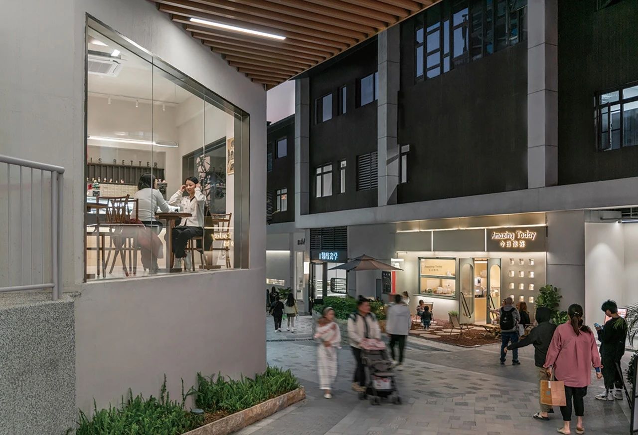 在遞進(jìn)式設(shè)計中,景觀設(shè)計在大尺度上把九條山巷和樂群路打造出歷史韻味,在小尺度上,從物料到工法,用細(xì)節(jié)帶來氣質(zhì)和品質(zhì)。商家自主的店面設(shè)計、微環(huán)境設(shè)計和室內(nèi)設(shè)計,用時尚的生活元素彌補了土建設(shè)計所達(dá)不到的顆粒度。照明設(shè)計和二次元的商業(yè)包裝設(shè)計、藝術(shù)設(shè)計,營造了感性的商業(yè)氛圍。